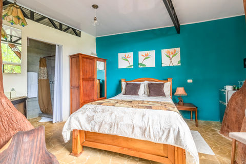 The Nest is our cutest , and one of our most intimate offerings perched a little higher up with a great ocean view and terrace where you can watch Toucans in the mornings and afternoons in the mango tree just in front.
